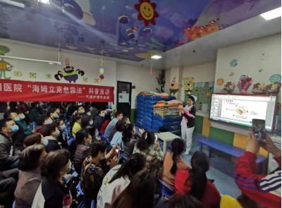 生活中,充满欢乐的同时也有意外,所以突发情况下的急救措施,是每个人必须要了解和掌握的。针对学龄前孩子年龄小,自我保护能力弱的特点。4月21日下午,我院气道护理专业组组长杜芝娟带领气道专业组委员来到渭城博雅幼儿园,为幼儿园老师及家长们开展急救知识培训,重点讲解“海姆立克急救法”,增长老师及家长们的急救知识,为幼儿的安全保驾护航。