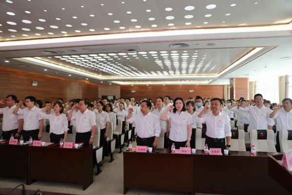 大会在庄严的国歌声中拉开帷幕。面向鲜红的党旗,院长助理沙宁带领新党员进行入党宣誓,全体老党员重温入党誓词。掷地有声的铮铮誓言,表达了新老党员们对共产主义的理想信念及为共产主义奋斗终身的坚定决心。
