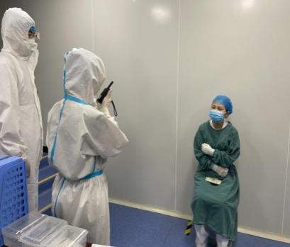 上报并消杀环节:在发生护士呼吸道暴露的同时,由另一名护士立即上报科主任、护士长,并接待患者,做好流调,标本采集,安排患者进驻负压隔离室进行隔离治疗,并立即对职业暴露护士及患者所接触环境做好消毒隔离,警示工作。紧急处置同时逐层汇报,包括最终立即上报咸阳市疫情防控指挥部,按照上级指示规范处置。
