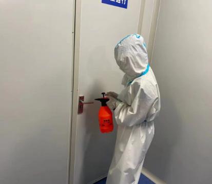 意外暴露后护士处置环节:护士为患者测量体温时,口罩意外松动,导致呼吸道近距离暴露,暴露者立即手卫生后捂住松动口罩,离开污染环境,进入潜在污染区,按规范脱卸防护用品,严格进行个人卫生处置,重新穿戴防护用品,按照领导指示进入我院负压隔离室隔离留观。