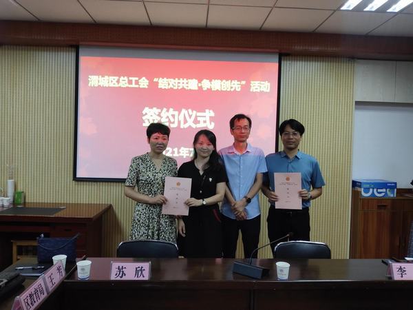 2021年7月16日上午,根据渭城区总工会对渭城区职工之家建设工作的指引,我院参加了渭城区总工会在民盟中学举办的“结对共建•争模创先”活动签约仪式。出席签约仪式的领导有渭城区总工会、区教育局、区卫健局分管领导;咸阳中学、延安大学咸阳医院、渭城区人民院、咸阳民盟中学4家结对共建单位工会主席、党支部书记等领导。