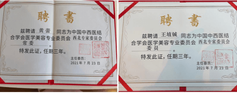 恭贺延安大学咸阳医院医疗美容科黄蕾主任连任中国中西医结合学会医学美容专业委员会西北专家委员会常委