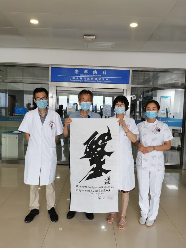 2021年8月16日下午,在医护人员井然有序忙碌的时候,一位患者家属走进来,拿着提袋,从里面取出一幅字画。力透纸背的“医道”二字,呈现其中。称赞延安大学咸阳医院老年病科霍金莲主任医德高尚,医术精湛,谨慎负责,赞美之词溢于言表。顿时,医生办公室变得热闹起来,引来好多患者及陪人欣赏字画,老年病科的办公室内充满了欢声笑语。