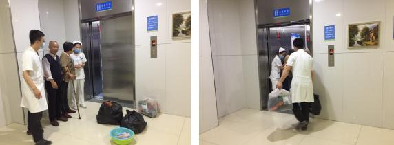 他们要回家了,由于家远,在甘肃镇原县,随身物品多,儿子提前下楼迎接回家的车辆,告知老人车辆将抵达楼下,我们便将叔叔、阿姨及携带用物帮助送到了车上。儿子握住主任的手再次表示感谢!我们与叔叔阿姨也再次握手道别,祝愿他们一路顺利!