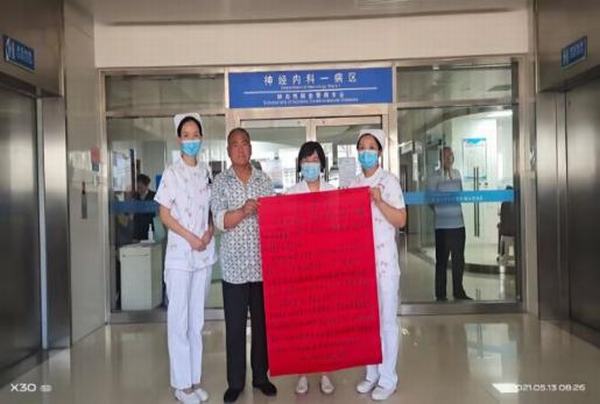 “你们辛苦了!”5月13日,延安大学咸阳医院神经内科一病区的医护人员刚严谨细致的交完班,就被一群人堵在了门口,原来是已经康复的患者和家属送来了给医生和护士的两封感谢信。