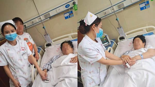 入院后经过药物治疗,患者心率提升,病情有所缓和,下午16:00患者在护士于琦的陪同下,携带心电监护仪前往脑科楼CT室做检查,当患者做完CT从检查床平移到病床上时患者突发意识丧失,呼之不应,颈动脉搏动消失, 心电监护提示室性心动过速,心率达到260次/每分,面对突发情况护士于琦当机立断,就地抢救,立即采取心肺复苏 ,口中不停呼唤患者,经过于琦护士及时的心肺复苏,患者很快意识恢复,心率恢复正常,当时于琦护士心中只有一个念头,那就是希望床能推的快点,再快点,在CT室护士与患者家属共同陪同下,2分钟之后终于顺利到达重症监护室,为救治患者赢得了宝贵的时间。医生立即开通导管室,对患者植入临时起搏器,经过一系列紧张而又惊险的抢救之后,最终患者脱离生命危险。