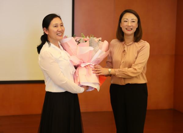 区委常委、组织部部长李婉妮同志向廉秋芳教授送上鲜花及慰问金