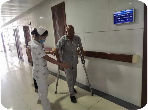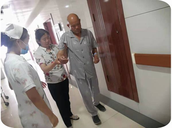 最后,护士向患者现场演示了偏瘫患者如何照护,如何搀扶及发生跌倒后如何处置等。