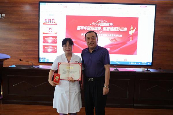 大会在热情高昂的演讲比赛中进入高潮,12名参赛选手以“传承红色基因,凝聚奋进力量、践行初心使命,护佑人民健康、提升医患沟通能力构建和谐医患关系”等为主题,结合我国医疗行业现状和医疗事业发展要求,图文并茂、有声有色的表达了医者仁心、无私奉献、不忘初心、牢记使命的精神情怀。一等奖获得者赵娟的演讲声音洪亮、圆润,慷慨激昂富有感染力,展现出当代医者的自信与风采,收到评委及观众的一致好评。二等奖获得者丁江博、韩童用自信、富有激情和真挚的语言抒发了青年医师积极投身医疗服务工作的决心。三等奖获得者王佳、蔡香香、王玉将个人理想与大爱无疆的职业精神紧密结合起来,展示了对医疗事业的的热爱。优秀奖获得者陈婉儿、胡丹、李芳兰、贺新荣、任尧、宋腾飞演讲激励着广大医务工作者继承优良传统作风,汲取历史智慧和力量,矢志拼搏奉献,在新时代卫生健康事业发展中砥砺奋进、不断前行。此次演讲比赛的举办在全院范围内广泛营造了尊医重卫的浓厚氛围,增加了员工对医院建设的责任感、使命感,更有力地推动了我院文化建设。