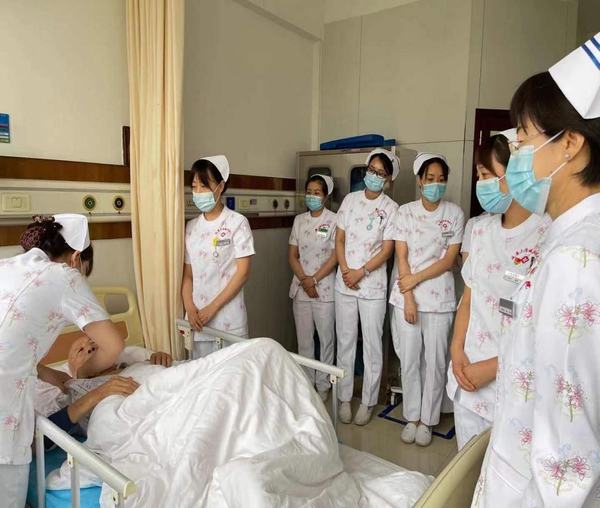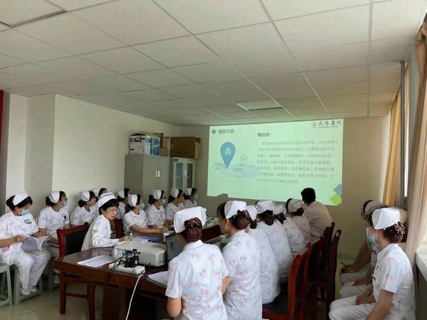 为解决危重症疑难患者在护理过程中的难题,发挥多学科综合力量,提高护理水平及质量,保障患者安全。2021年6月16日下午,延安大学咸阳医院内科病院开展了多学科护理查房,陈英总护士长、杜梅梅护士长、康复专科护士韩瑞、内科病院相关科室护士长和护理骨干及消化内科二病区全体护士30余人参加了本次查房,查房由消化内科二病区护士长梁芳主持。