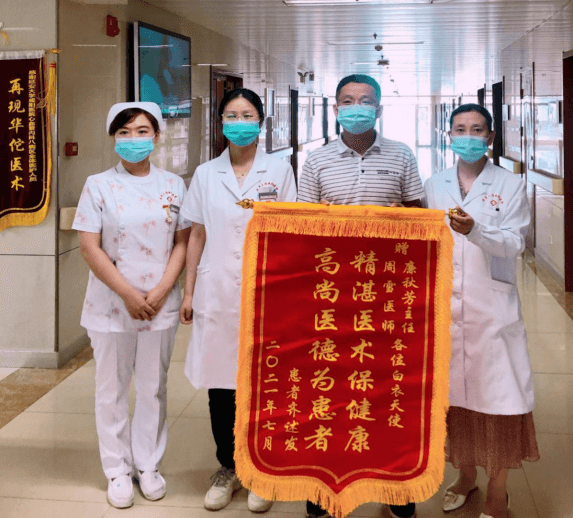 在患者康复出院后,身体状况较以前明显好转,生活质量显著提高,患者家属于2021年8月21日,“偷偷”跑来科室送来了一面锦旗,简单的文字,真诚的谢意,是对医者极大的认可,也是对科室所有医护人员的感恩。