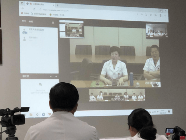 会后,陕西省人民医院磁共振室张小玲教授医、技、护团队和我科进行学术讨论交流,其中陕西省人民医院磁共振室雷晓燕副主任指出PPT制作注意事项及参考文献引用;张鑫技师长提出“颈部专用线圈”使用情况,李娟护士长提出“碘钆对比剂同日使用,先行CT增强还是MRI增强?有关肾功能异常时,检查间隔时间?”等问题进行讨论。最后,刘连锋教授进行了会议总结,他首先感谢了张小玲教授的指导,同时也对各位临床科室主任和医生对医技交流活动的大力支持表示感谢;他指出,医技交流沙龙活动不是作秀、不是大家凑在一起热闹一下,而是认认真真地向授课老师学习、实实在在地互相交流沟通和提高,这一次的线上形式也为系列会议增添了新的渠道,同时也锻炼了队伍;他强调,影像科的各位同仁要汲取张小玲教授的课程和指导内容并再次学习,提高自己在颅内动脉夹层方面的认识,不断使我们的诊断更加规范和标准,只有不断提高对于疾病的影像诊断水平,才能更好地服务和造福广大患者。