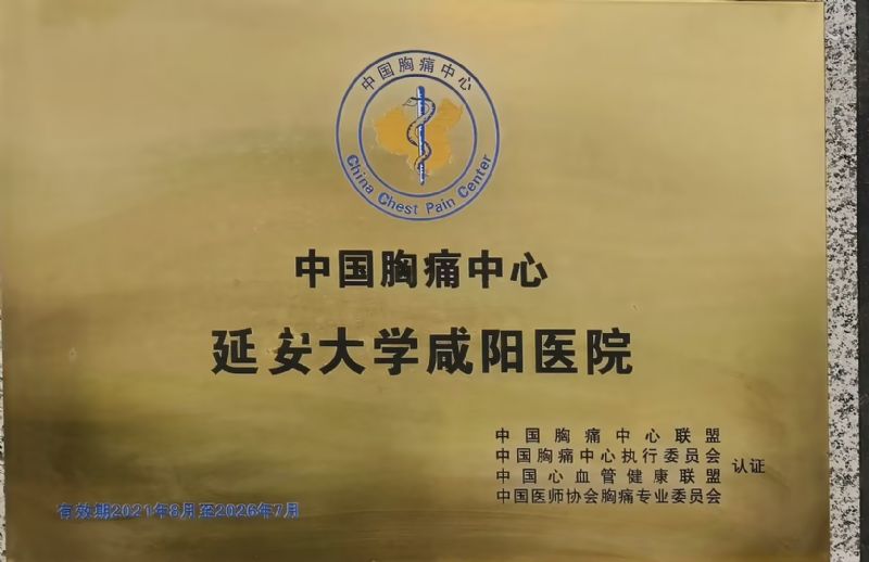 2017年4月6日,中华医学会心血管分会,中国胸痛中心认证工作委员会,中国胸痛中心总部公告,延安大学咸阳医院通过2017年第一批中国胸痛中心标准版认证。成为陕西省咸阳市首家获得国家认证的胸痛中心。