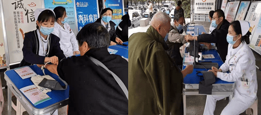 由心血管内科廉秋芳主任、贺新荣责任总医师、高虎东主治医师、周雪主治医师组成的专家团队针对不同年龄段的人群进行了有针对性的血压健康指导,将高血压的成因及危害、相关预防和治疗方法对在场的群众进行了详尽的宣传,对患有高血压的群众进行了日常饮食指导和用药指导。
