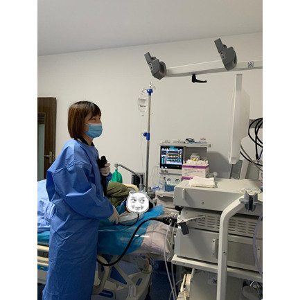 患者,范某某,女,58岁,因“间断上腹部不适1月”入院,曾于外院行超声内镜示:食管粘膜下隆起,考虑为平滑肌瘤。入院后张荣主任对患者进行认真的评估,考虑到患者既往身体素质一般,病变较大,若采用外科手术需切除部分食管,手术风险较高且创面较大,术后恢复缓慢,严重影响患者生活质量。针对患者病变特点,可应用消化内镜治疗新技术STER将肿物切除。经过充分的术前准备,张荣主任在无痛诊疗中心麻醉医师的配合下为患者进行食管下段黏膜下肿瘤STER术,术中及术后未发生出血、穿孔及感染等并发症。
