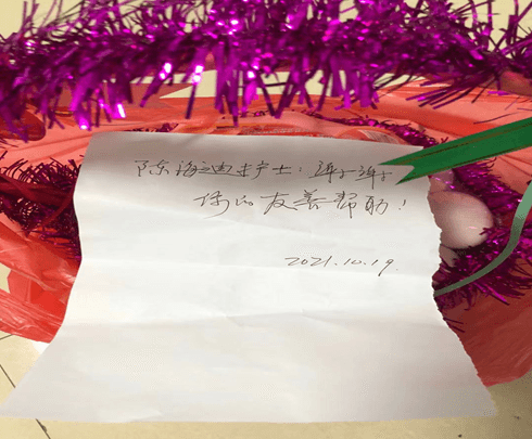 今天我们收到了一份跨越千山万水,来自海南省的感谢信,信不长,没有华丽的辞藻,也没用过多的修饰,一个“感谢”流露出了浓浓的真情,让我们长期坚守在疫情防控一线的工作人员收获了满满的感动。10月18日晨我们像往常一样对每位就诊的患者进行扫码、严密调查流行病学史、测温、登记信息 ,在10:30进行流调的过程中发现一位从海南省来陕旅游的老人,曾去过中风险地区,立即逐级上报,给予急查核酸,等待核酸检测结果。我们将老人带到发热门诊留观室,在此过程中老人很担心,也很害怕……多次询问我核酸结果什么时候能出来?我很耐心的给他解释给他说:“叔 你现在的心情我特别能理解,但你先不要着急,结果出来我会第一时间告诉你的,你有需要的话及时给我们说”。中午12点我去留观室问老人,叔 你会点外卖吗?他说不会,我给你点饭,你想吃什么?有没有忌口的?要水吗?”老人一一给我说了他的需求,我按照他的要求给他准备好午餐,他很感激。核酸结果出来为阴性,如释重负,且我们护士长又帮助老人在手机上订到了回家的火车票,老人紧皱的眉头终于舒展开来,脸上也有了笑容,连声感谢踏上了回乡之路。忙碌一天的我们看到老人的笑容,也不那么疲惫了。