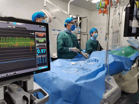 RFR静息全周期比值,是最新的评价冠状动脉的功能学指标。相比传统的FFR检查,RFR检查无需使用最大充血药物,避免了患者不适,更简单、安全,而且手术时间更短,效率更高。通过RFR指导冠状动脉介入治疗,可以改善患者预后,节约医疗费用。崔旭辉介入团队在心导管室技师的协助下,半小时内完成左右冠脉内RFR检查,结果分别是:0.92,0.97,0.96;根据客观的检查结果,患者三支血管都不需要植入支架,马先生一家高兴地放下了思想包袱,开心回到病房,继续药物治疗。