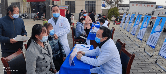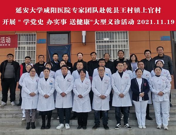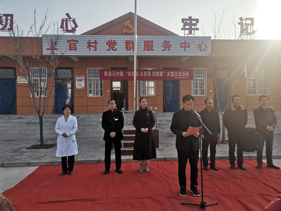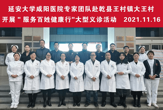 11月16日-11月20日,延安大学咸阳医院流动医院工作人员连续五天先后在王村镇大王村、北昌村、上官村、进行大型义诊,参加义诊的有乾县纪委副书记、监委副主任王亚军、乾县卫建局副局长任兆国、王村镇党委书记王小刚、副书记黄伟、延安大学咸阳医院院长张海涛、流动医院院长赵莉、流动医院行政副院长张军强、业务副院长王梅芳、宣传部科长槐新国和相关村干部以及1000余群众。