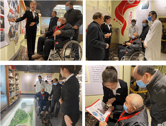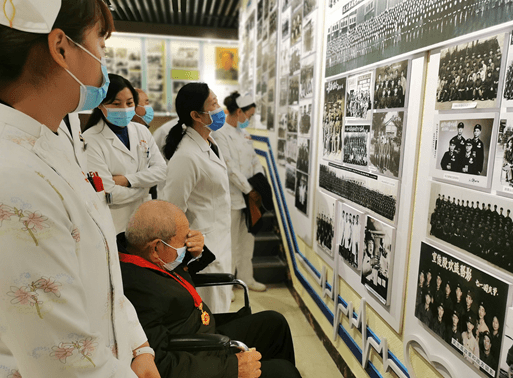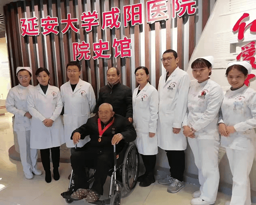 11月18日,在心血管内科八病区主任连秋芳博士和CCU病区李新国主任等医护人员的陪同下,王爷爷走进了延安大学咸阳医院院史馆,将自己的军旅生涯与医院的铁军雄风和红色基因紧紧相连。院史馆馆长王进祥同志热情地接待了这位可爱的老战士,并安排了专职人员为这位特殊的参观者全程讲解。从在炮火硝烟的解放战争中诞生,到欢庆新中国成立;从抗美援朝的战地救援到社会主义铁路建设的医疗保障;从百万大裁军到服务社会群众…在整整四十分钟的讲解中,王爷爷一直认真聆听。在讲述到医院跟随部队跨过鸭绿江奔赴抗美援朝战地救援、血洒战场、被授予自由勋章时,九十多岁的英雄老兵瞬间被拉回到70多年前那白雪皑皑的朝鲜战场,数次激动地洒下热泪,从怀中掏出了他在战场上用生命换来的奖章。透过王爷爷的奖章,我仿佛看到了沉甸甸的纪念章背后隐藏的那段浴火奋战的岁月。追忆那场战争,我们满怀感激之情向最可爱的人--英雄的中国人民志愿军致敬!