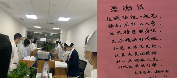 在工作中,我们收到的关于患者以及家属的感谢信、锦旗等非常之多,但是像魏大叔这样利用我们晨交班时间,当众将感谢之意表达给我们的,这是第一次。为病人所为,想病人所想,做病人所做,急病人所急,患者是可以真切体会到的。在这个过程中,我们只有不断提高技术水平,提升服务质量,才能带给患者最专业、最准确的诊疗服务。