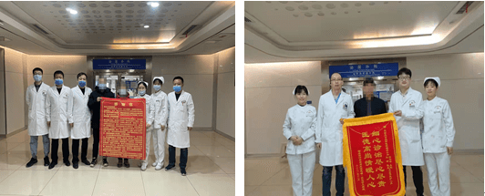 2021年12月11日早上,泌尿外科所有医护人员都在各自的岗位上开始了一天的工作,这时有三位患者及家属,来到了办公室,分别送上了锦旗和感谢信,家属边展开锦旗边说到:“说什么今天我也要亲自送上这面锦旗,以表达我对泌尿外科全体医护人员的感激之情,感谢他们对我们无微不至的照顾,感谢他们以精湛的医术、高尚的医德、和蔼的态度使我们感受到家的温暖,他们不愧拥有‘白衣天使’的称号,”一位家属激动的说。其中另一位家属握住强主任的手说到“你们是咱老百姓的好大夫啊!”一时间,热情的气氛洋溢在整个病区。