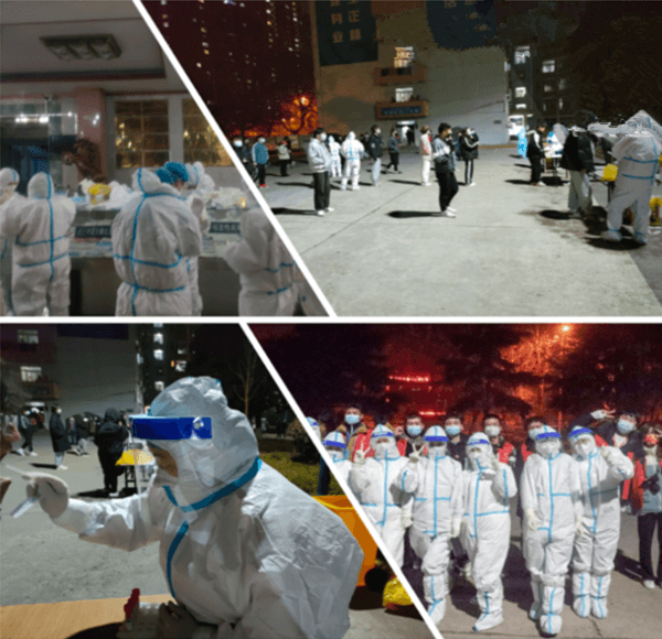 时光荏苒,岁月如梭,为快速应对近期疫情形势,保障广大群众身体健康和生命安全,延安大学咸阳医院在咸阳市疫情指挥部统一安排下,外派123名核酸检测人员分赴全市各小区、各学校开展核酸采样。2021年12月31日是跨年最后一天,也是我们采集核酸的第13天,下午15:00刚刚结束八个点位小区总计14541人次的采样,又接到18:00给邮电大学和陕西能源技术学校核酸采样的通知,此时此刻大家带着疲惫的身体却无一点怨言,“疫情一日不除,战斗一刻不停”,疫情就是战场,没有任何力量阻挡我们前进的步伐。