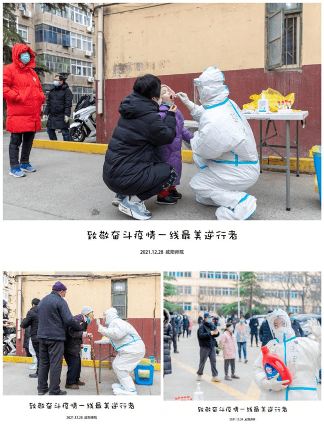 跟你们分享一些日常吧。今日在采样点,我在整理物资的间隙,突然听到一句:“让孩子们先吃饭吧,从早上到现在了,特别辛苦的,一口饭没吃呢”!我闻声抬头,是位老奶奶。随即排队的人也在附和:“对呀,先吃饭吧”。她们丝毫不在乎自己已经排了很长时间的队,我心里瞬间一股暖流涌上心头,虽然只是一句很平淡的话,却是整个冬日里最暖心的爱。在我们采样结束脱下防护服时,听到群众略带心疼的感叹:“竟然都是一群小丫头呀”!像这样的事情还有很多:有在采完核酸对我们敬礼的学生,有送我们自己亲手绘制的“加油“”图画,有咿呀学语的小朋友生涩的道谢,有耋耄老人泛着泪花抱着自制暖手瓶送给我们取暖的……在这个冬天,大家相互温暖着。