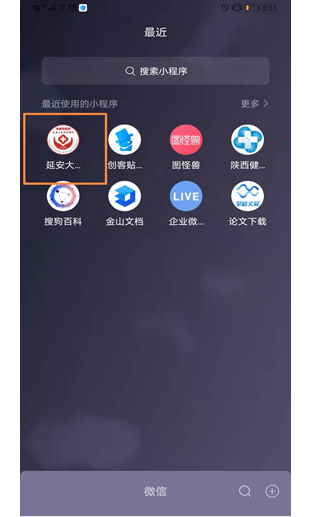 第一步:微信小程序搜索“延安大学咸阳医院互联网医院”