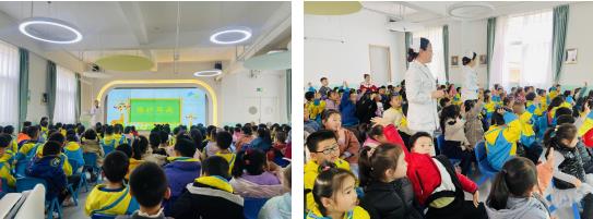 院外由王小侠护士长及冯丹医生亲入幼儿园,通过声情并茂的知识科普讲座,亲切、温暖的互动,提高了小朋友们的爱耳、护耳意识。