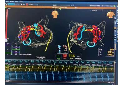 心房颤动是最常见的心律失常之一,每分钟快至350~600次的心房跳动,快速且毫无规律,导致心房内压力增高,血流速度减慢,易导致心衰及栓塞。对于有症状的阵发性房颤及药物不能控制的房颤,射频消融是有效的节律控制手段,可明显减轻房颤负荷,甚至达到长时间无房颤发作。而房颤射频手术的难点在于术中如何识别心房纤维化程度,制定有效的消融策略以达到最佳的治疗效果。射频消融联合Marshall静脉酒精消融技术的应用标志着我院房颤射频消融治疗的新台阶。