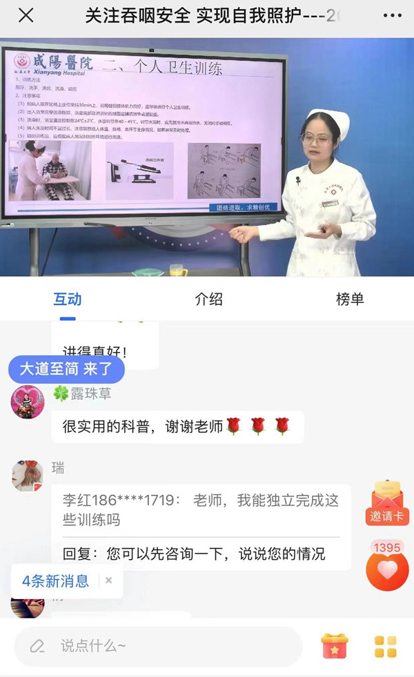 为了积极响应一年一度的“科技之春”活动,给人民群众提供实用性的健康科普知识,延安大学咸阳医院于4月20日15时开展了一场以“关注吞咽障碍患者安全进食及偏瘫患者日常生活能力训练”为主题的线上科普活动。