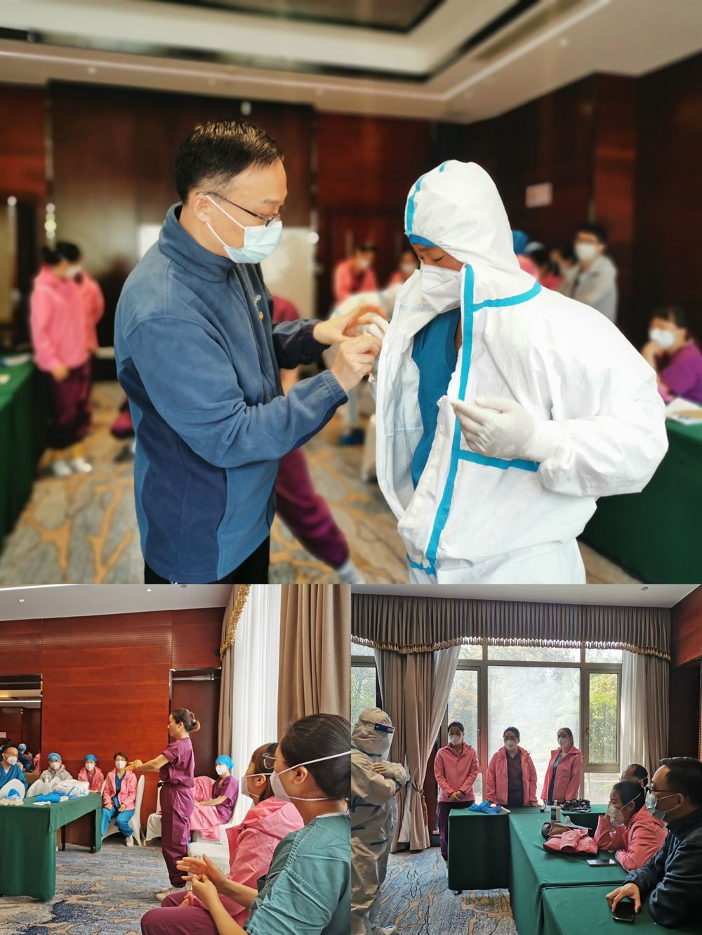 经过简单的休整,我们队员迅速投入到紧张有序的入舱前相关培训,最重要的准备工作就是穿脱防护服的流程细节和相关院感知识强化,利用进舱前的缓冲时间加紧练习、培训、考核,确保做到万无一失。