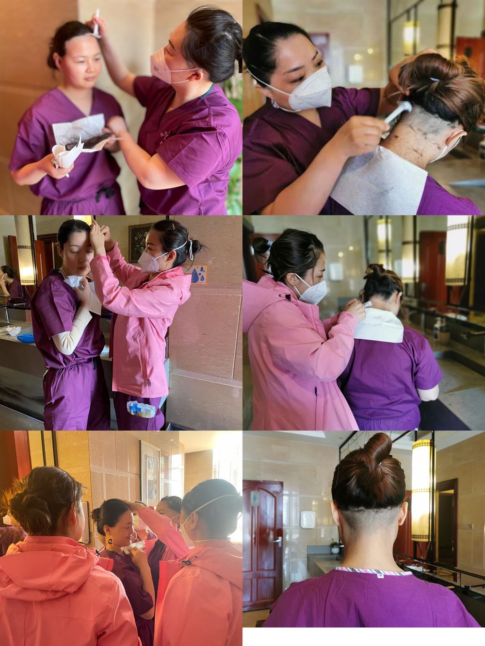 “身体发肤,受之父母”,头发也是女孩子最珍贵、最爱惜的东西,有位队员说:“我10月份就要结婚了,本来准备去拍婚纱照的......”护士长拿着剃须刀的手抖了抖,但还是毅然为她剃了头发。就是这群“傻傻可爱”的女孩子们,放弃与家人团聚的时光、放弃对孩子的陪伴,不远千里,来到这里。大家都说护士的个子都不高,身材都瘦小,此时的你还觉得我们瘦小,娇弱吗?
