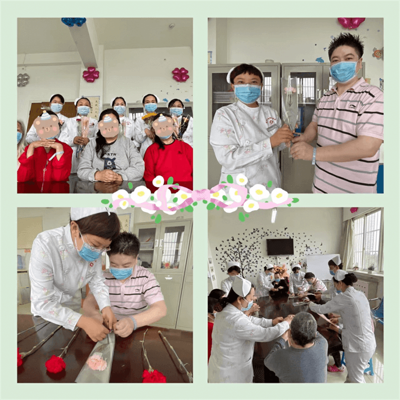 环境优雅的患者活动室里传出了阵阵笑声,这里的住院患者们正在制作花束,因为他们想在5·12这个属于护士的节日里,用自己的方式,来感谢为他们尽职尽责日夜守护的护理人员。当一支支鲜花送到护士们面前时,他们激动的无以言表,一个个深深的拥抱很好的诠释了护患之间的感情。患者的信任就是对我们护理工作的最高赞誉,让护患之间的心桥更加牢固。