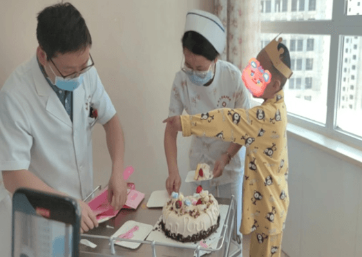 “我们在昨天就商量着,明天要给孩子一个惊喜”。宋张鹏医生说。“看着小患者稚嫩的脸庞,真诚的许着美好的愿望,开心地和医护及病友分享蛋糕......我们都很希望他能好起来,度过每一个属于他自己的节日”,张西兰护士长这样说着,眼眶湿润了......医患之间的温情就在孩子每一个灿烂的笑容中得到了诠释,我们也衷心地希望小患者早日康复。