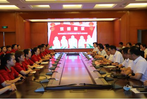 最后,李卫军主席代表精诚医疗集团做了重要总结讲话。他强调援沪医疗队队员舍小家温暖,成大家安康,迎难而上,不顾自身安危支援防疫抗疫,守护人民健康。直面疫情感染风险,忍受酷热天气影响,克服艰苦条件,承担繁重任务,夜以继日,一丝不苟,出色的完成了防疫抗疫的使命任务。用行动展现了三甲医院的使命与担当,用勇气与奉献践行了当初行医时的无悔誓言,用精湛的技术与优秀的服务彰显了延安大学咸阳医院医务人员的风采,用行动诠释了延安大学咸阳医院“以人为本,救死扶伤”的服务宗旨,用无悔奉献唱响了一曲服务群众的青春之歌,用医者初心谱写了一首防疫抗疫的壮丽诗篇。