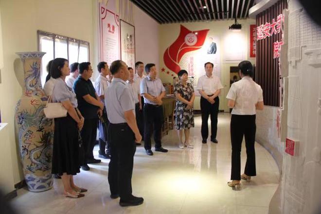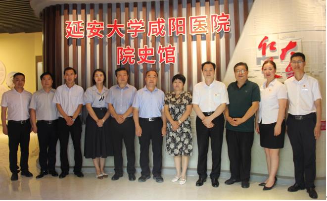 6月24日下午,中共咸阳市委宣传部副部长李玉冰、市委党史研究室副主任吴鹏、市卫健委副主任李建业一行,在院史馆进行实地考察。院长张海涛、党委书记姚晓峰、院史馆馆长王进祥及相关职能科室负责人陪同考察。