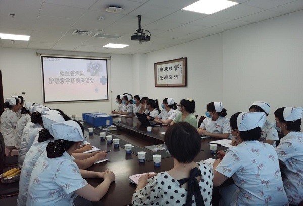 2022年6月28日下午,脑血管病院在神经内科六病区示教室召开2022年度护理教学查房座谈会。本次会议以“传承理念、创新模式、引领方向”为主题,通过“分享、讨论”两个环节展开。脑血管病院宋春兰总护士长担任会议主持,医院教学管理委员会李辉、高佩佩,张文静、刘敏护士长和脑血管病院各科带教组长、N3级以上带教老师等20余人参加了座谈会。