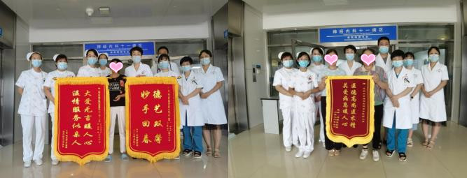 2022年07月18日的早晨,忙碌的神经内科十一病区分外热闹。一面面锦旗的到来使得整个科室洋溢着暖融融的气息。魏先生及家属为科室医疗组送上了“德艺双馨 妙手回春”的锦旗,为护理组送上了“大爱无言暖人心 温情服务似亲人”的肯定;即将出院的刘先生及家属又送来了一面“医德高尚医术精 关爱病患暖人心”表达对科室以张维主任为代表的全体医护人员的高度赞扬。