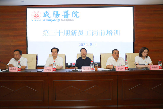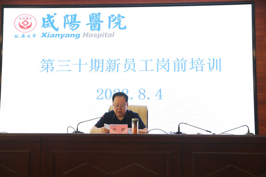 8月4日上午,延安大学咸阳医院第三十期新员工岗前培训开学典礼在外科病院二楼会议室盛大开幕。精诚医疗集团顾问组组长张群、董事局主席李卫军、延安大学咸阳医院院长张海涛、党委书记姚晓峰、科研教学管理中心主任韩晓芳、副院长吴栋梁、院长助理刘连锋、各职能部门负责人及160余名新员工参加了此次典礼,会议由党委书记姚晓峰主持。