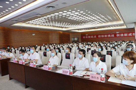 开学典礼开始,党委书记姚晓峰代表医院班子成员和全体员工对新员工的加入表示热烈的欢迎,宣读了本次培训的总体安排和相关要求,张海涛院长在面向新员工致辞中表示,新员工到来为医院注入新鲜血液,增添了新的活力和可持续发展的动力,医院将与他们一起展望未来,成就光荣与梦想。张院长重点介绍了我院波澜壮阔的发展历程和万众瞩目的辉煌成就,围绕八字方针、医院理念、医院口号三个方面讲述了我院文化传承,同时对新员工提出了五点要求和殷切期望,希望新员工通过岗前培训对医院有一个全面的认识,对医院的前景和个人职业发展充满信心。张院长呼吁新青年员工用自己的行动谱写新篇章,在未来岁月贡献自己的才华和热情,与医院一起走向新的辉煌。