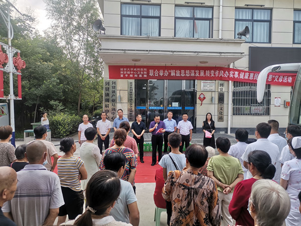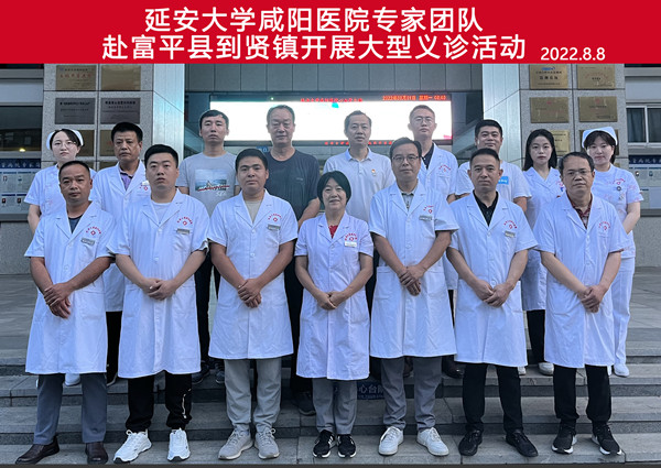 2022年8月8日,延安大学咸阳医院联合富平频阳医院、富平县到贤镇卫生院在到贤镇举办“解放思想谋发展,转变作风办实事,健康惠民报乡恩”惠民利民大型义诊活动。出席义诊活动的领导有富平县卫健局副局长岳亚奇,富平县医保局副局长赵鹏辉,精诚医疗集团董事局主席兼延安大学咸阳医院董事长李卫军,延安大学校长办公室副主任兼医学院综合办公室主任高曙光,富平县到贤镇卫生院院长张勇飞,富平频阳医院院长王鹏,延安大学咸阳医院流动医院业务副院长张军强,宣传部袁政伟科长,20余名医护人员及500余名群众参加义诊活动。