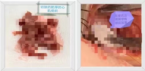 35岁的杨先生反复头晕10余年,上三楼都需要歇一歇才行,并且严重时,眼前发黑多次,多方奔走不能明确原因,听说我院心脑血管病诊疗技术在咸阳地区首屈一指后,慕名前来我院就就诊。有经验的心内科崔主任听诊发现心脏在收缩期粗糙而响亮的杂音,于心内科住院检查,经心脏超声明确诊断为“肥厚型梗阻性心肌病,室间隔心肌肥厚达26mm(正常小于10mm),左室流出道压差最大151mmHg。”,杨先生过度肥厚的心肌已经引起左室流出道极重度的梗阻,心脏压力负荷极高,如不解除梗阻,将反复晕厥、胸闷、气短、甚至心衰、猝死。