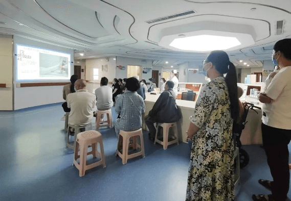 活动第一个环节,医务人员借此机会为患者们讲解了留置针的护理,教病友们做起了呼吸功能锻炼康复,深静脉血栓的预防措施等,大家都表示受益颇多。