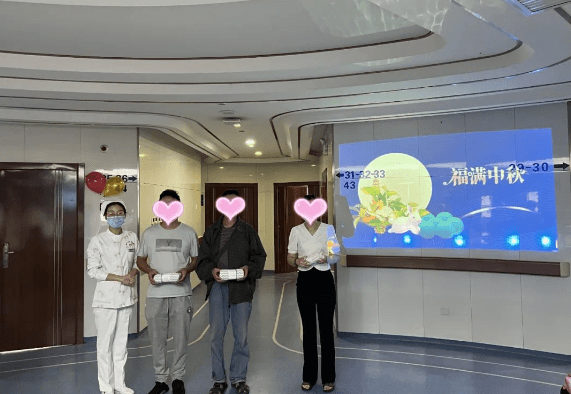 当然,团圆日怎能少得了月饼呢,第三个环节,医务人员来到病房将提前准备好的各种口味的月饼逐一送到每一位患者的手中,月饼虽小,爱意很浓,我们希望患者在住院期间得到医疗服务的同时,也能感受到家的温暖。