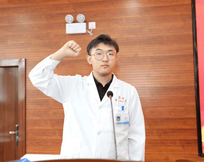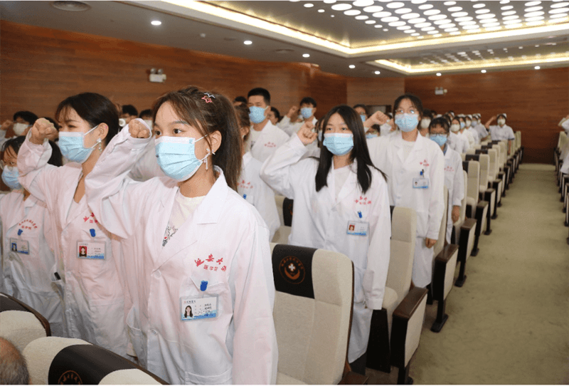 武乐乐同学代表全体学生进行发言,她号召全体见习生,在新的环境下要继续发扬延安大学的艰苦奋斗精神,不断加强自我修养,提高品格,培养自主学习和独立思考解决问题的能力,圆满完成见习期间的各项任务。张登科同学带领全体见习生诵读《医学生誓言》,庄严、坚毅的宣誓声充分展示了他们的精神风貌和践行医者使命的决心。