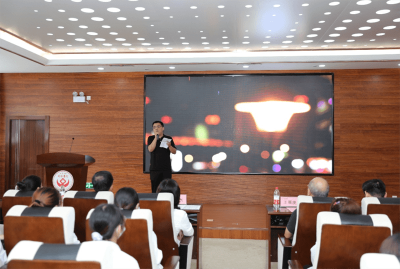 最后,科教部王绍辉副部长进行了教学管理规定的解读,他希望各位同学能珍惜学习机会,端正学习态度,严格遵守规章制度,要在学习实践中练就高强本领,努力做到学有所获、学有所感、学有所成,要像海绵吸水一样汲取知识,珍惜大好学习时光,求真学问,练真本领,在学习阶段把基石打深、打牢,为自己的医学之路提供不竭动力。通过医院搭建的平台,踏上施展才华的人生大舞台,以优异的成绩回报医院、学校和社会。