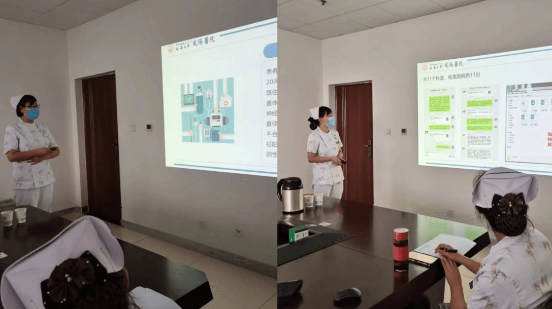 讨论会在第一小组的病例收集过程展示中正式拉开帷幕,两组成员紧紧围绕本组疑点难点展开了讨论,详细的病史介绍、全面的诊疗经过、准确的护理评估,都体现着护理人员的专业性;精美的PPT制作、抽丝剥茧的原因分析、中西医的多点解决措施,都展示着护理人员的锐意进取。护士们还从不同的角度结合自身的工作经验就中枢性高热除常规护理外还有哪些方法可以解决?便秘患者按摩腹部,何种手法?新设备器材应用临床需要解决的问题有哪些等方面进行了激烈的讨论,同时对护理工作中易出现的问题提出了实用性、操作性强的解决方法,分享了心得和感受,现场发言积极、气氛活跃。