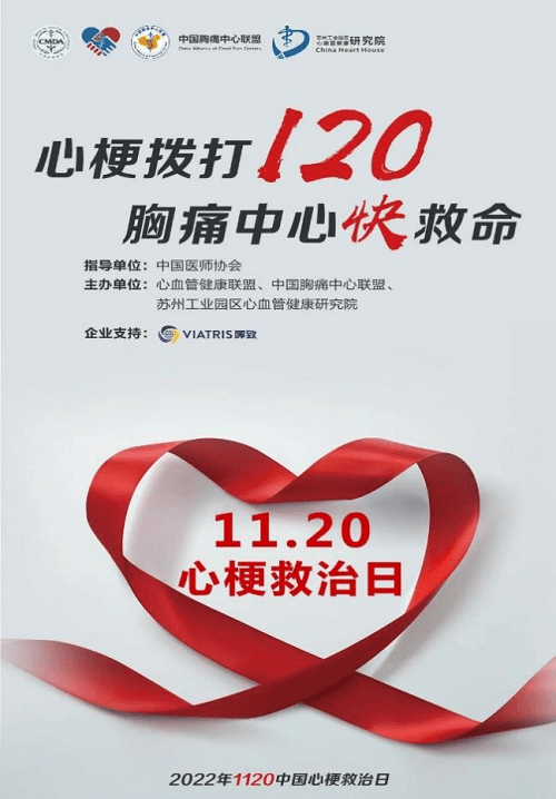 为提高公众的防范意识,普及急性心肌梗死规范化救治流程,我国把每年11月20日定为“心梗救治日”,号召大家牢记“两个120”。1120这个数字包含了心梗救治的两个寓意: