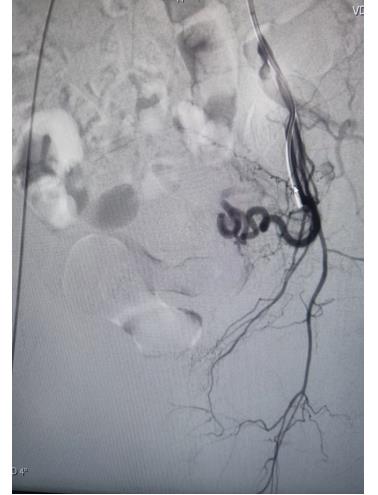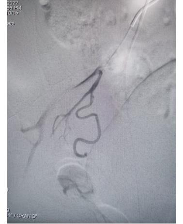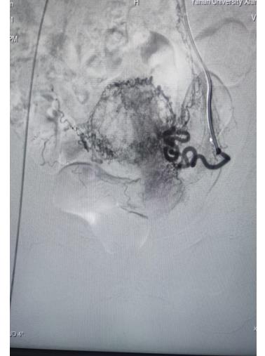 子宫动脉栓塞术属于血管介入性治疗,方法是于股动脉穿刺进针插入导管,在X射线造影下定位进入两侧子宫动脉,注入栓塞剂完全栓塞子宫动脉,从而达到止血或让子宫肌瘤和病灶缺血坏死的目的;2022年12月6日,在崔旭辉主任、孟庆槐副主任医师、马力主治医师等我院介入团队协作下,成功为患者进行了双侧子宫动脉栓塞术,术后患者子宫异常出血停止,效果立竿见影,患者病情恢复良好。